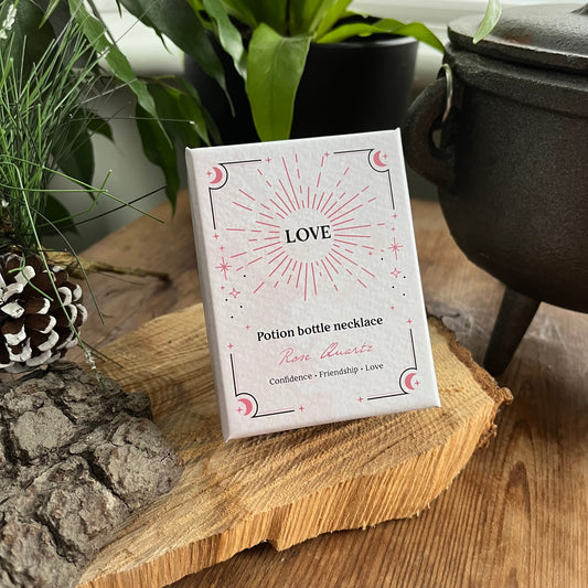Love Rose Quartz Crystal Chip Potion Bottle Necklace