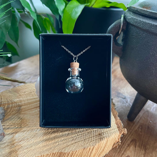 Protection Black Obsidian Crystal Chip Potion Bottle Necklace