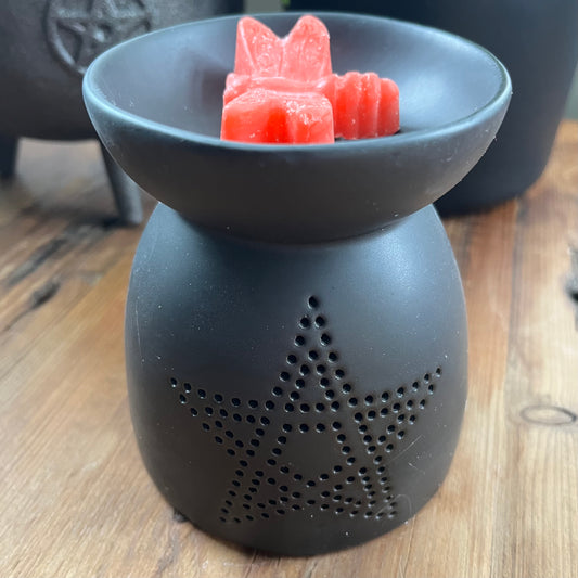 Black Oil Burner with a Cutout Pentagram Design