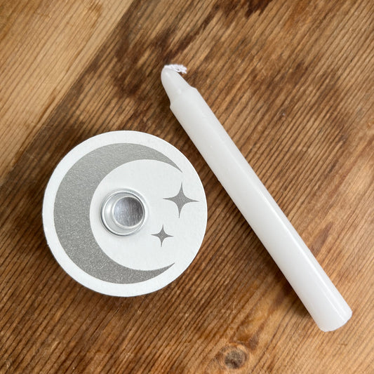 White Mystical Moon Spell Candle Holder
