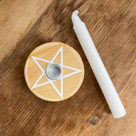 Natural Wooden Pentagram Candle Spell Holder