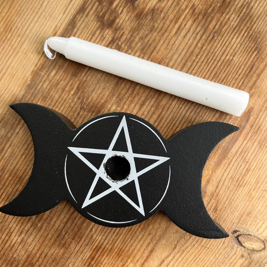 Black Triple Moon Spell Candle Holder