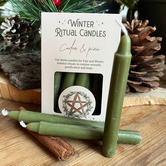 Cedar and Pine Winter Ritual Spell candles - Pack of 12 Green Yule Spell Candles