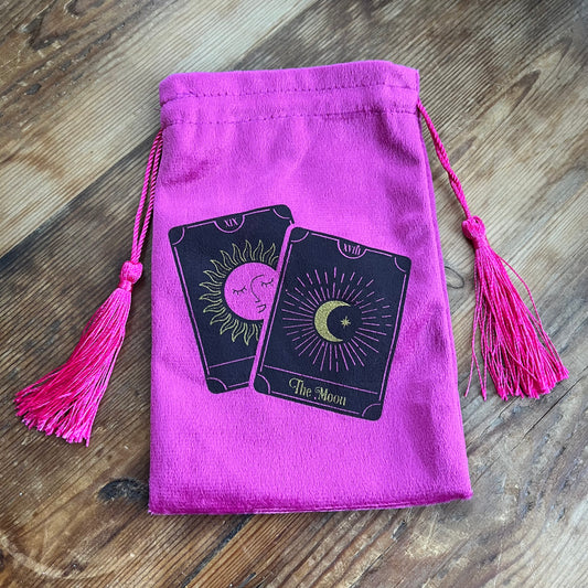 Moon & Sun Tarot/Oracle Card Bag - Pink Velvet