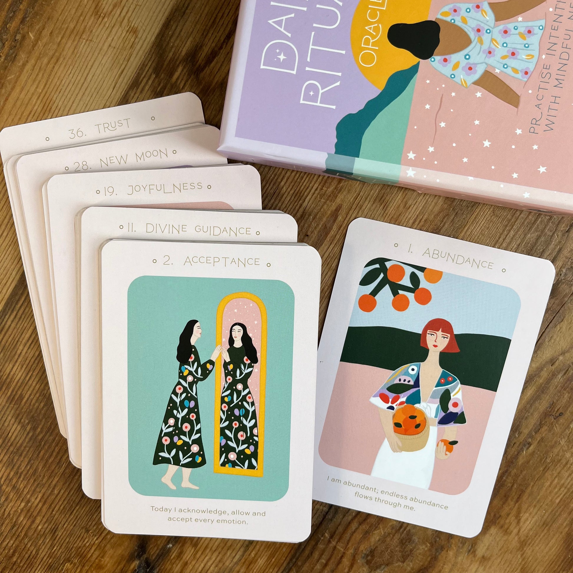 The text accompanying each card contains a mantra (affirmation), message and ritual you can connect to and practise with mindfulness and intention.