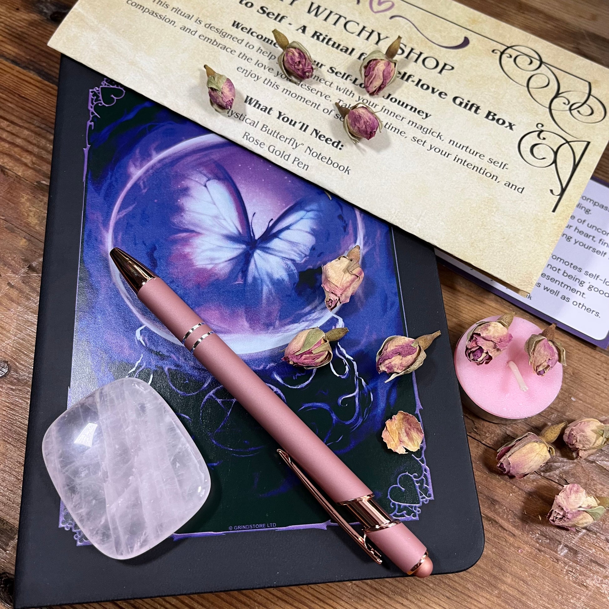 - “Mystical Butterfly” Notebook – A sacred space for self-love journaling, affirmations, and reflection. The butterfly symbolises transformation, spiritual growth, and rebirth.